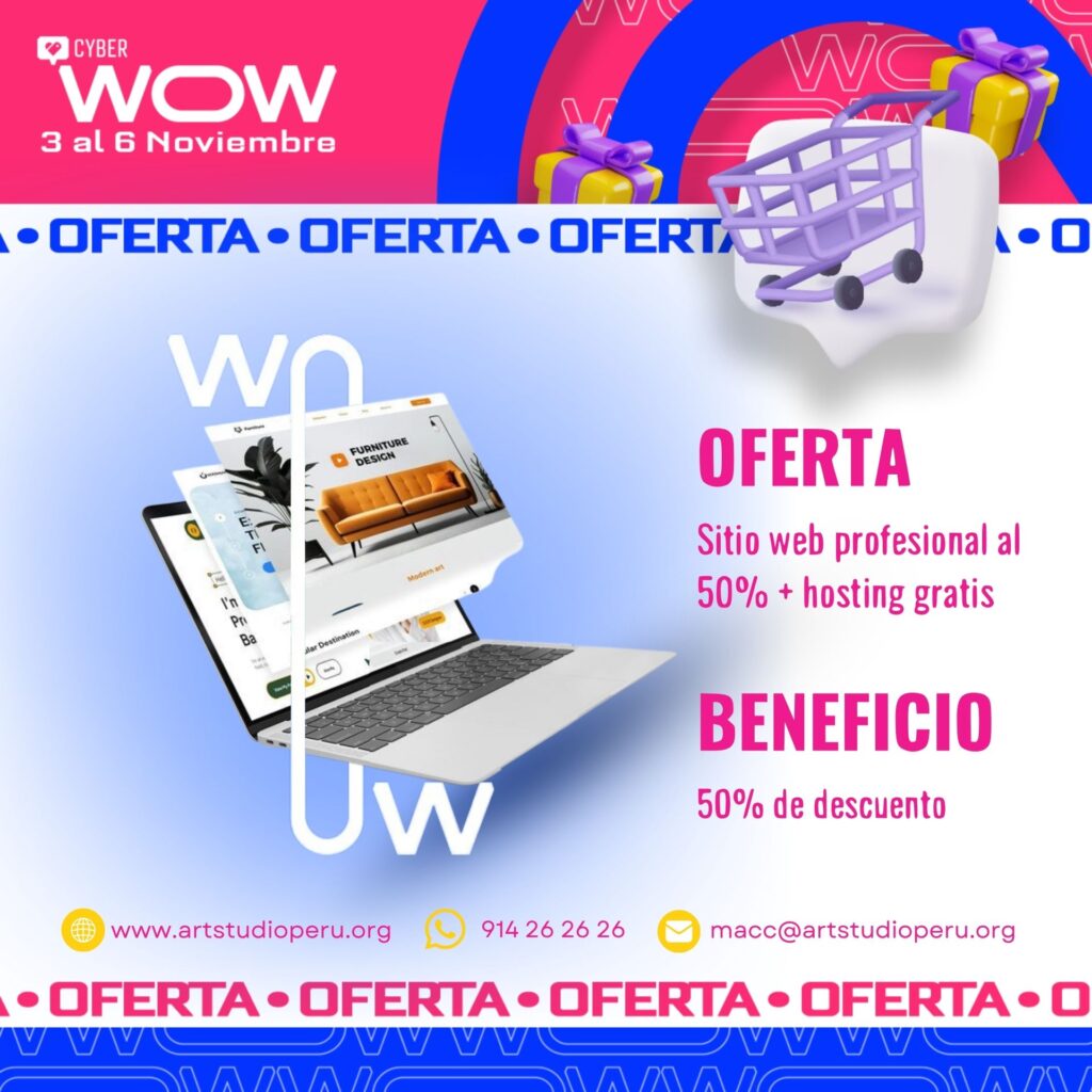 Del 3 al 6 de noviembre, Perú estará comprando online como nunca. ¿Tu negocio está listo? Aprovecha nuestra oferta EXCLUSIVA: 50% de descuento en diseño y desarrollo de páginas web optimizadas para vender en Cyber Wow Perú 2025.